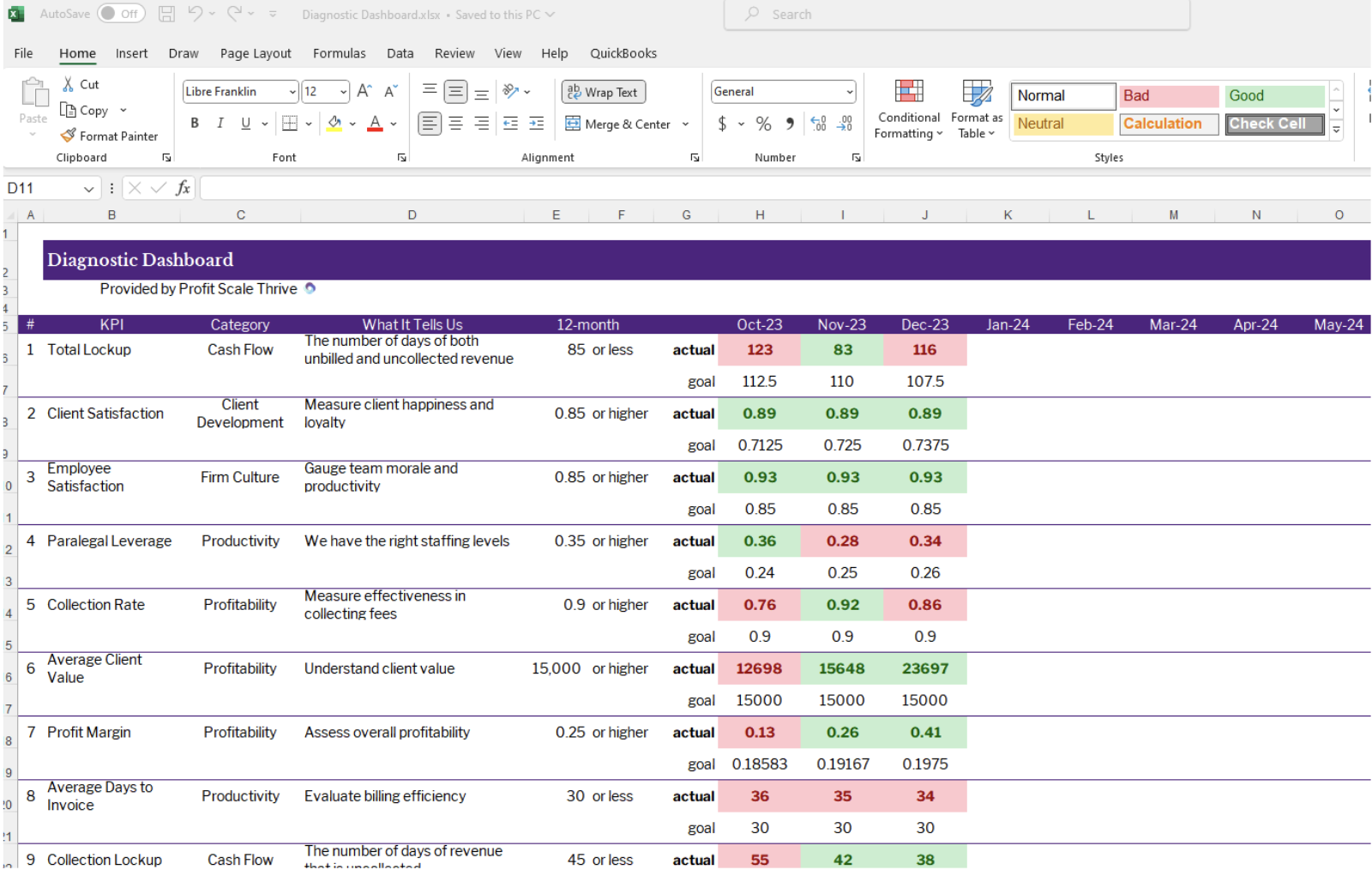 Here is an example of the Diagnostic Dashboard I use with my CFO clients: